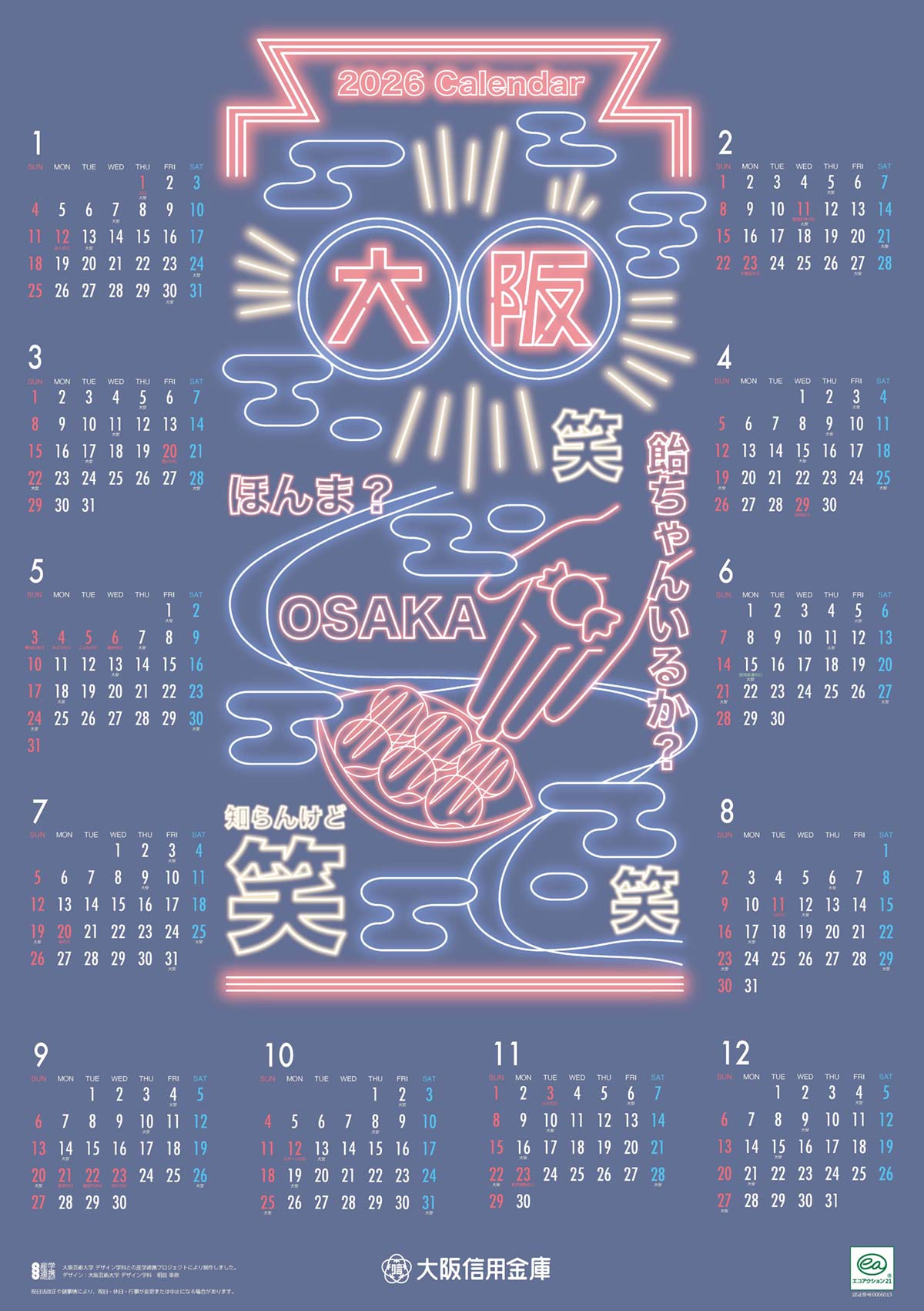 2025年度、大阪信用金庫と大阪芸術大学による産学連携プロジェクトが実施され、大阪芸術大学デザイン学科の学生たちが「2026年カレンダー」のデザイン制作を行いました。